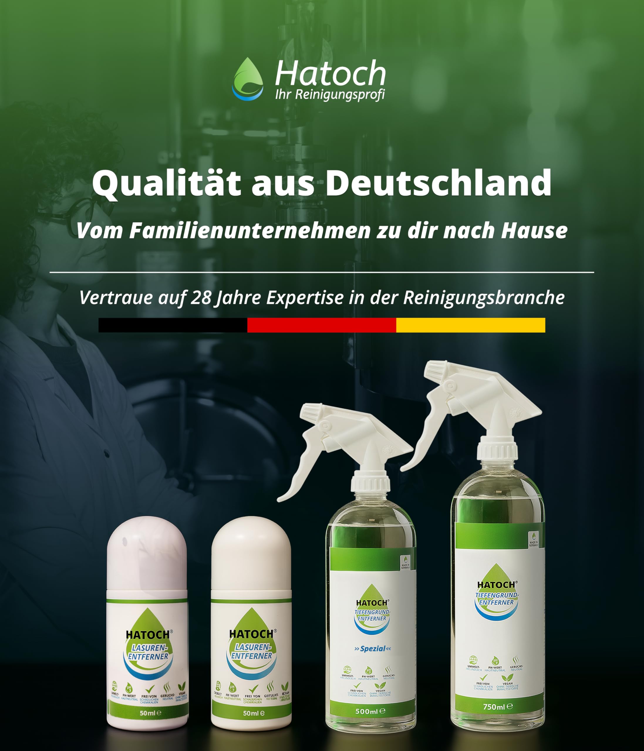 Der HATOCH® Tiefengrundentferner ist die Antwort aus Hannover. Unsere vom Deutschen Patent- und Markenamt geschützte Formel löst die harte Polymerstruktur gezielt an – durch die Synergie aus speziellen Mitteln und natürlichem Inhaltsstoffen.